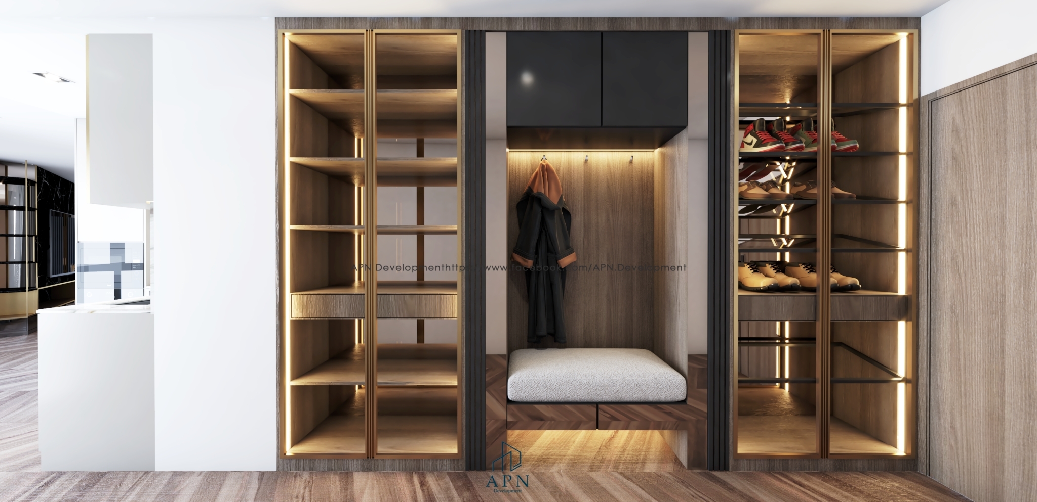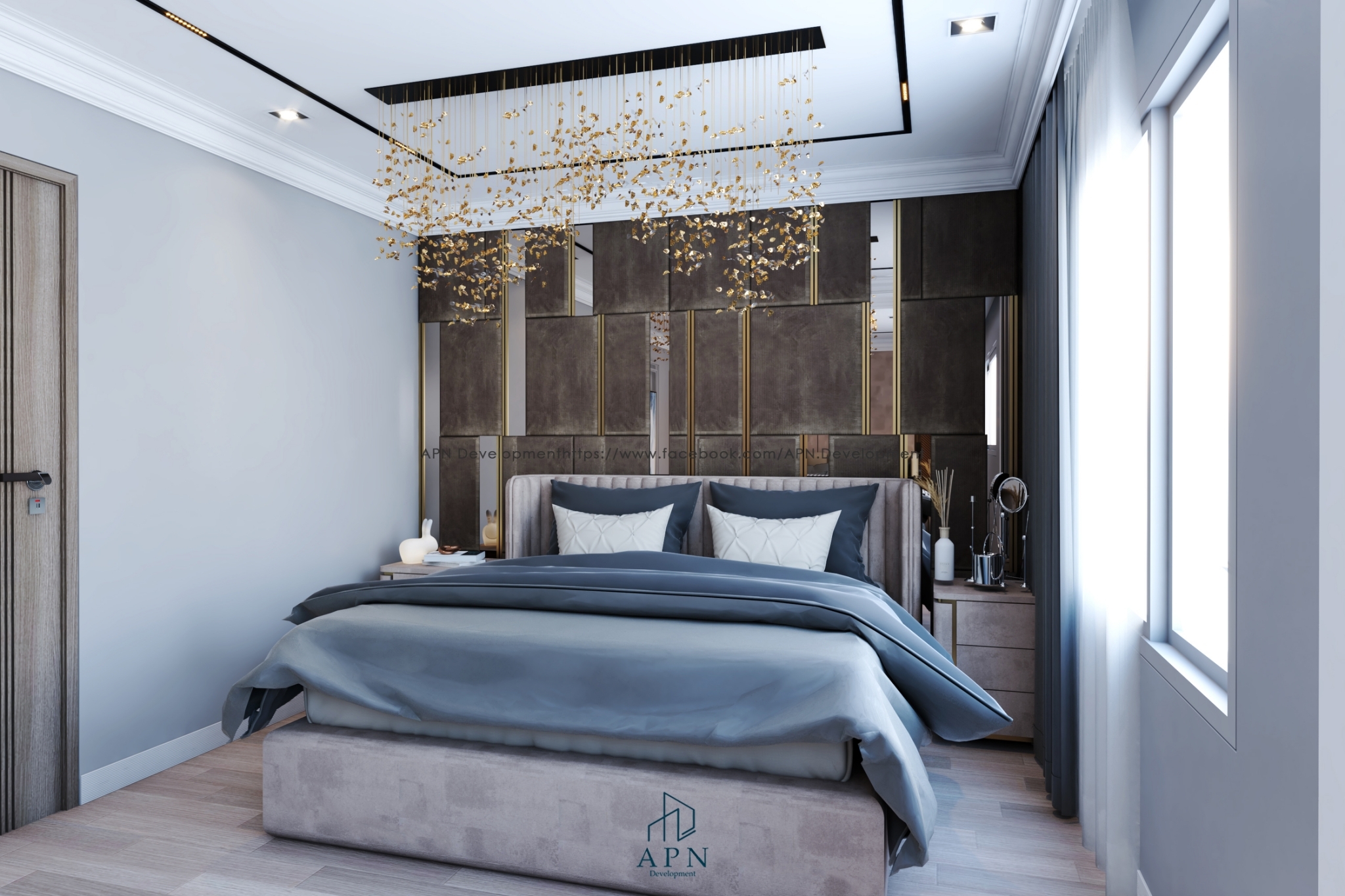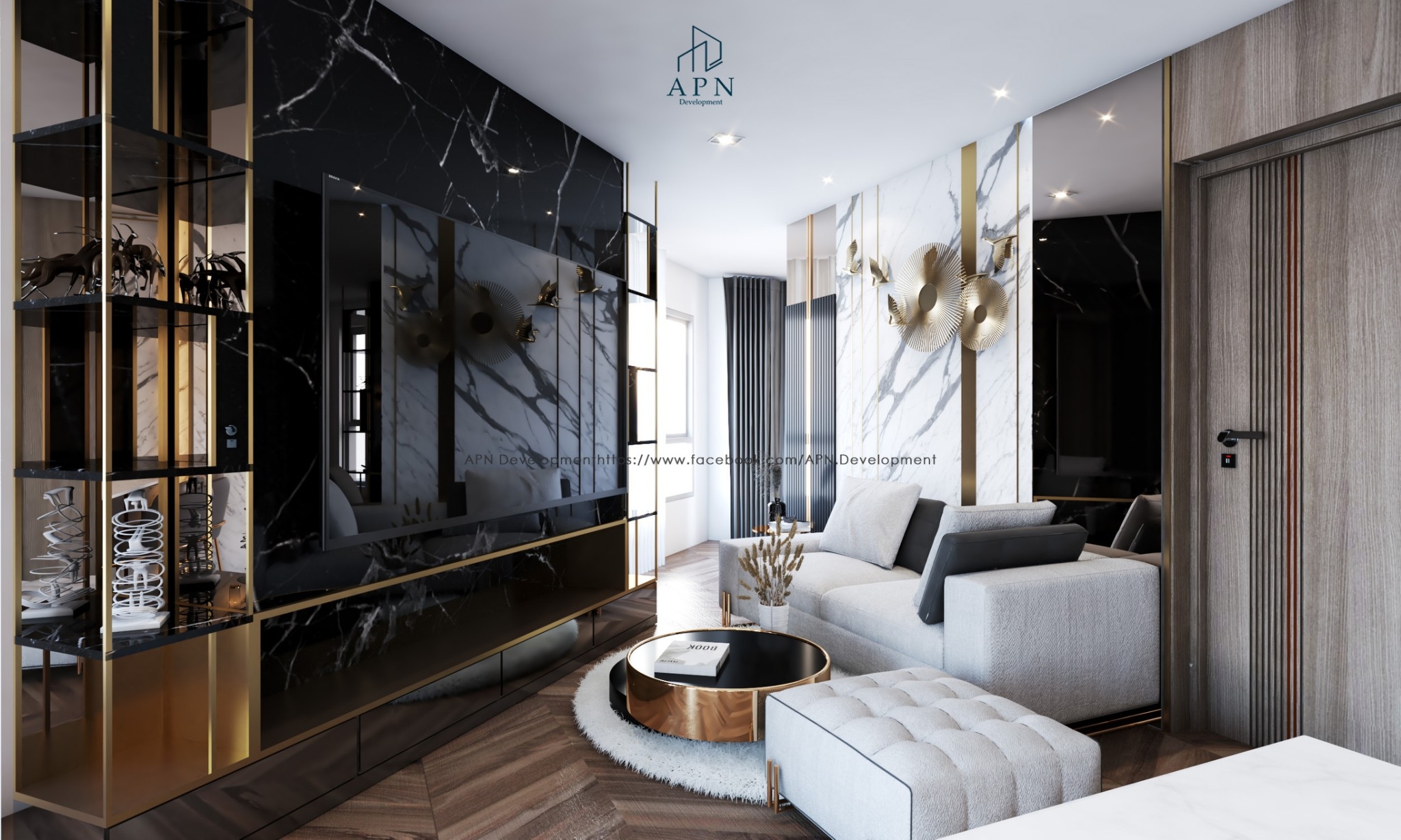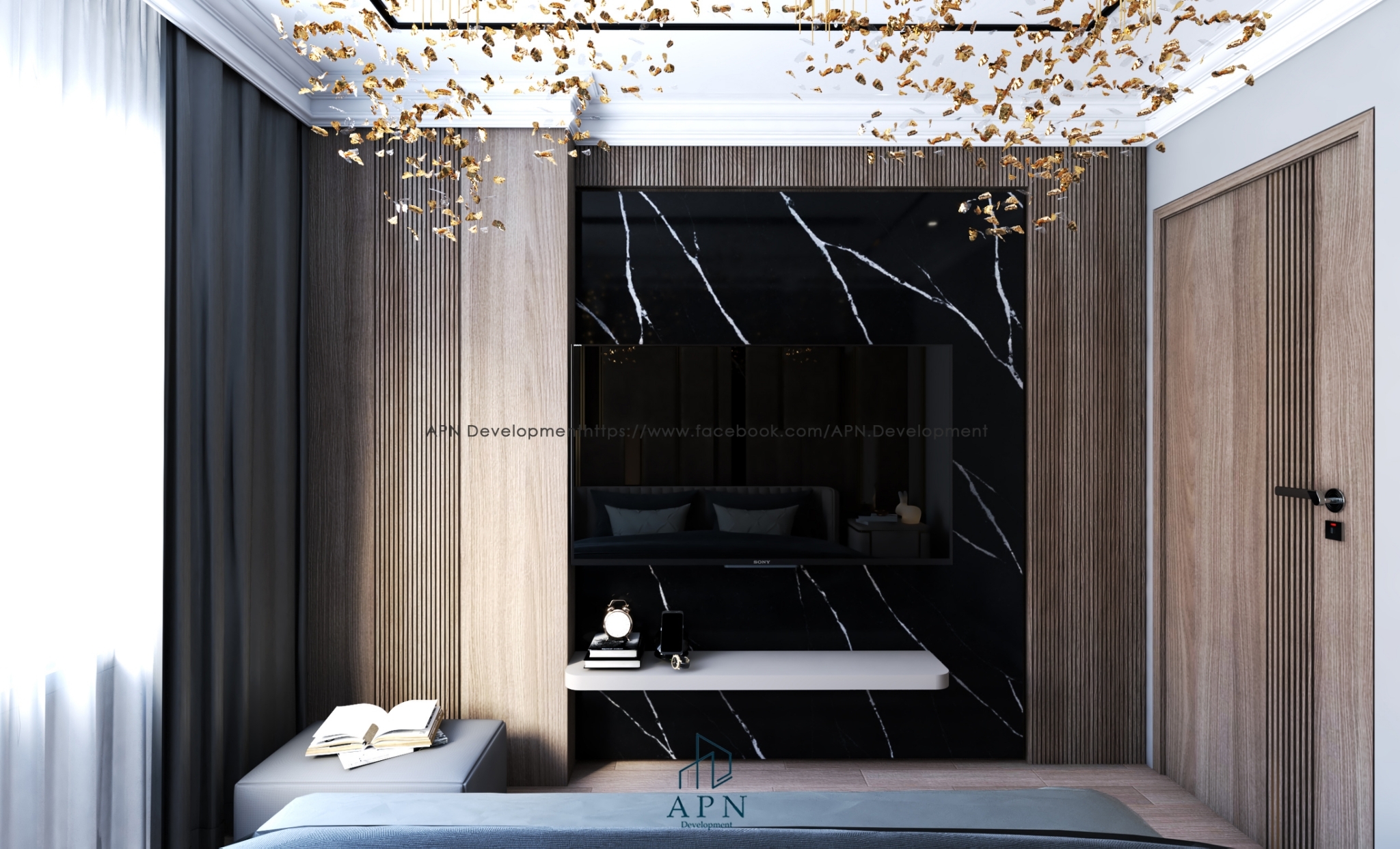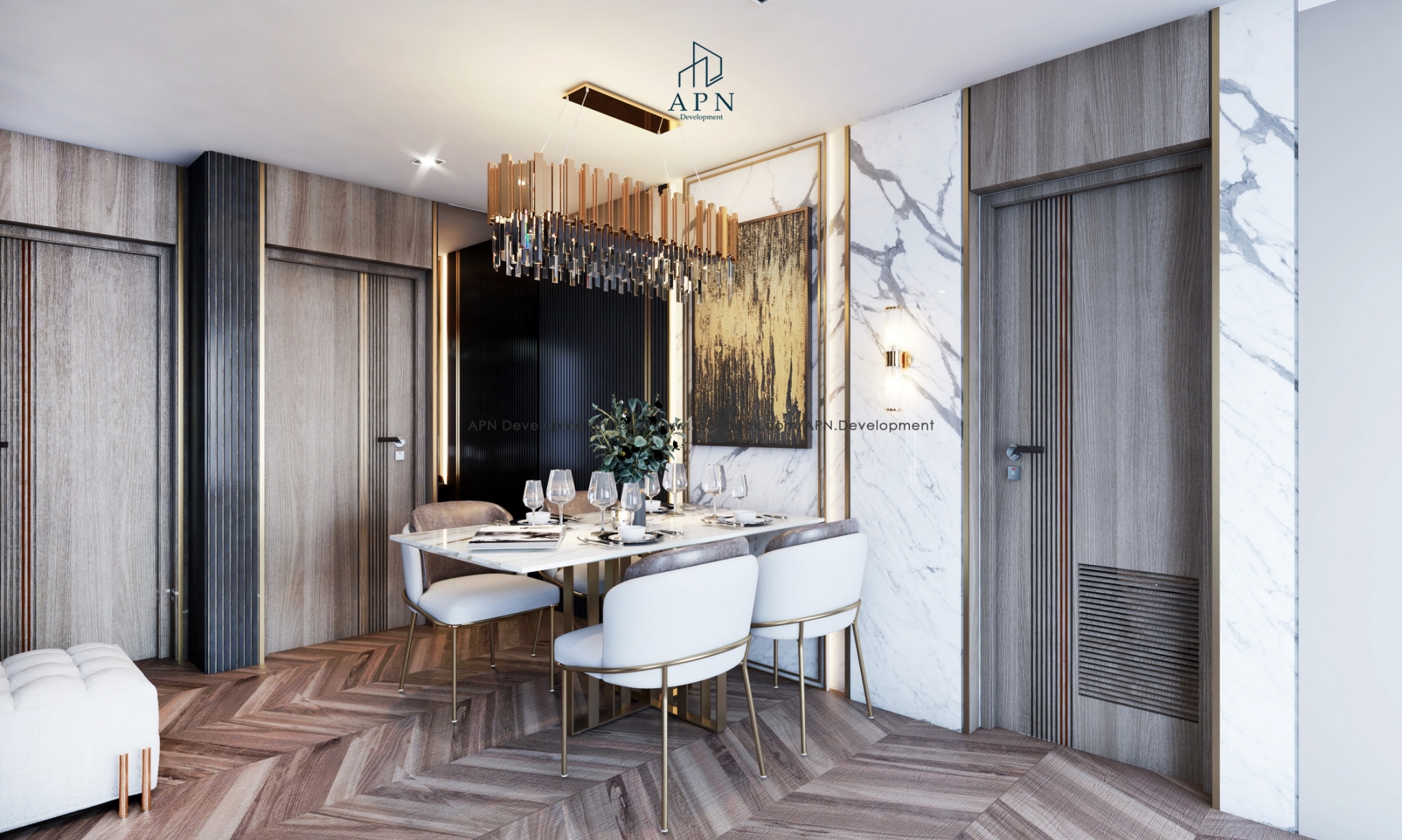 Decorated in Modern luxury style, emphasizing the use of wooden materials, and gold stainless steel,