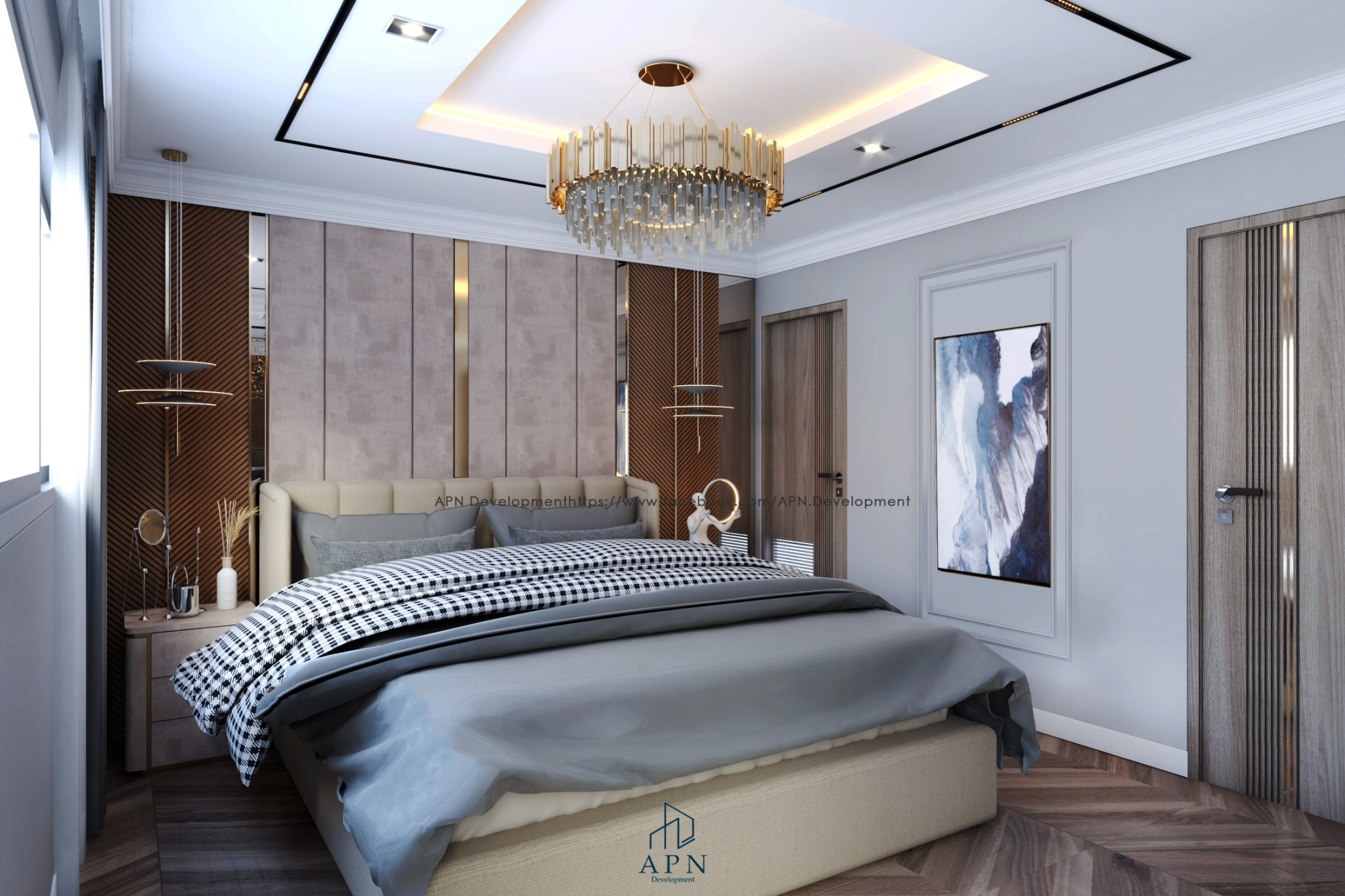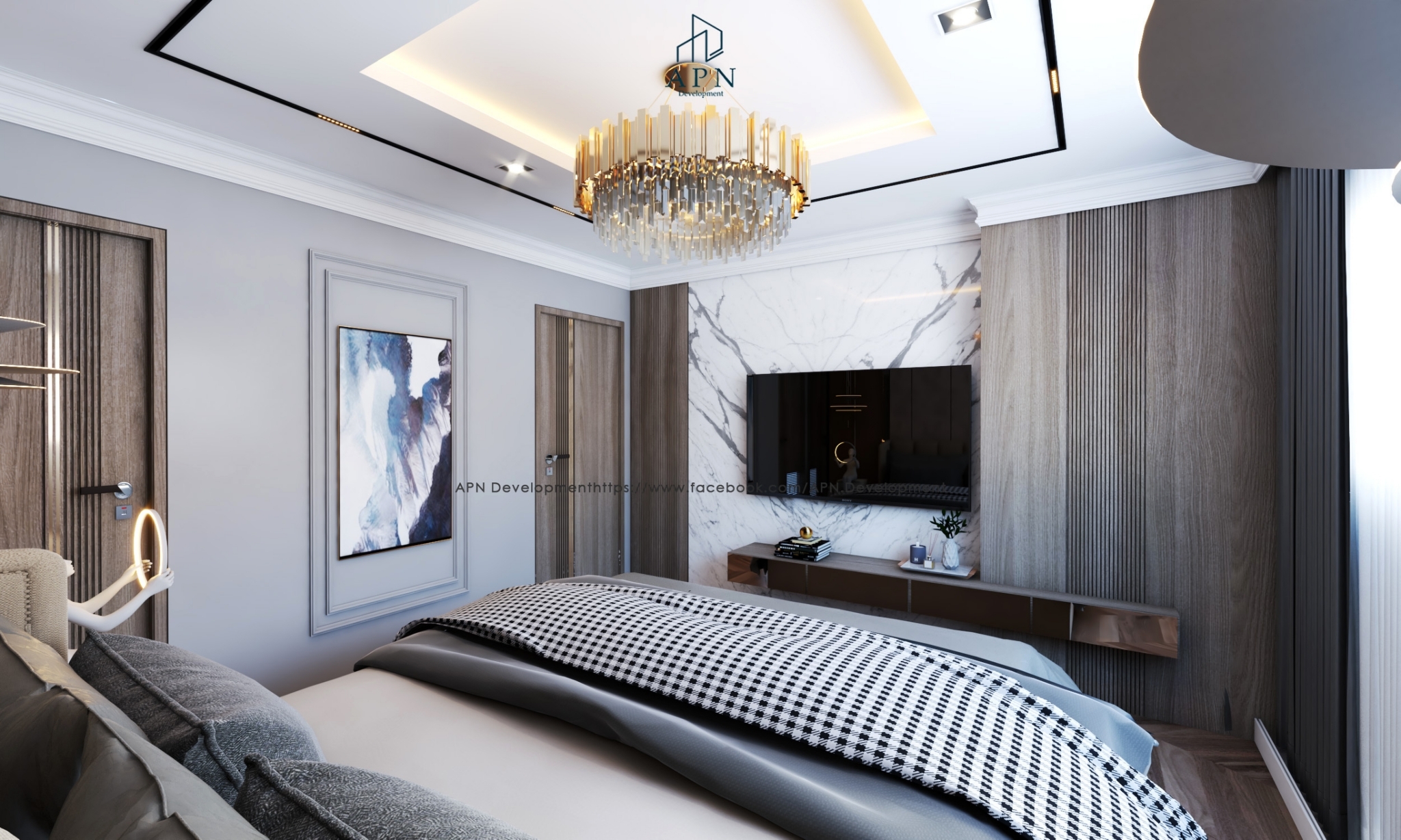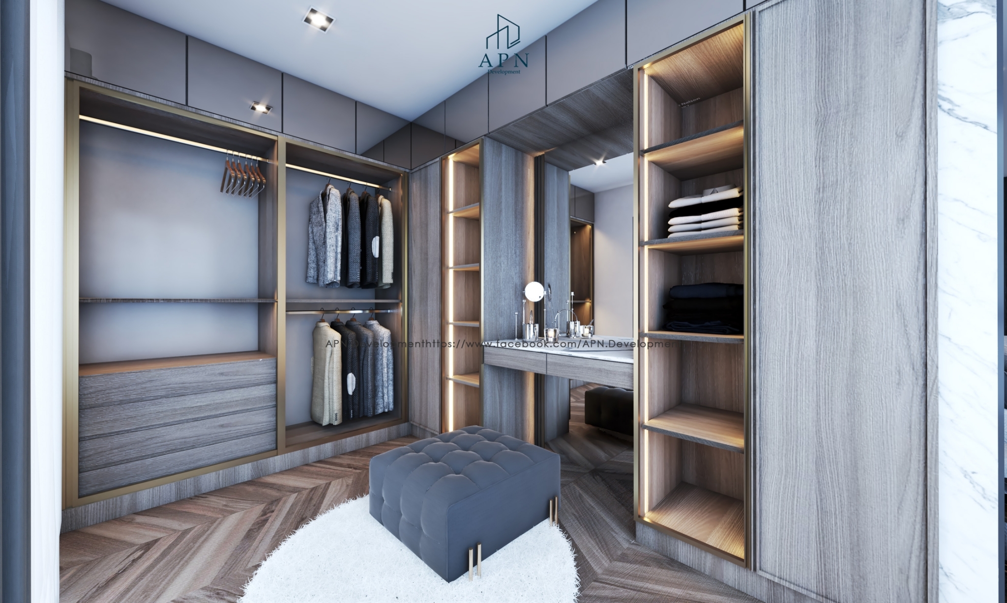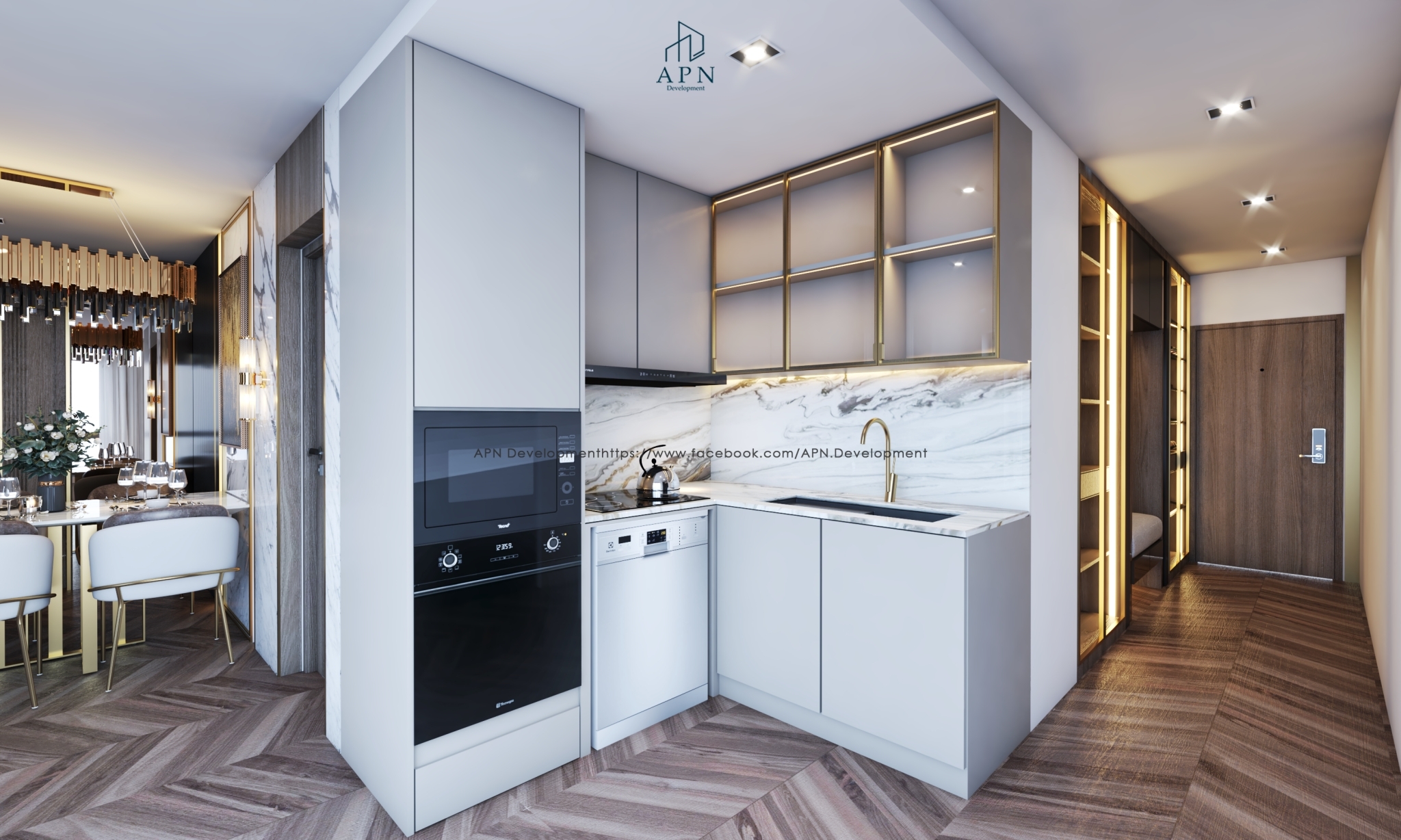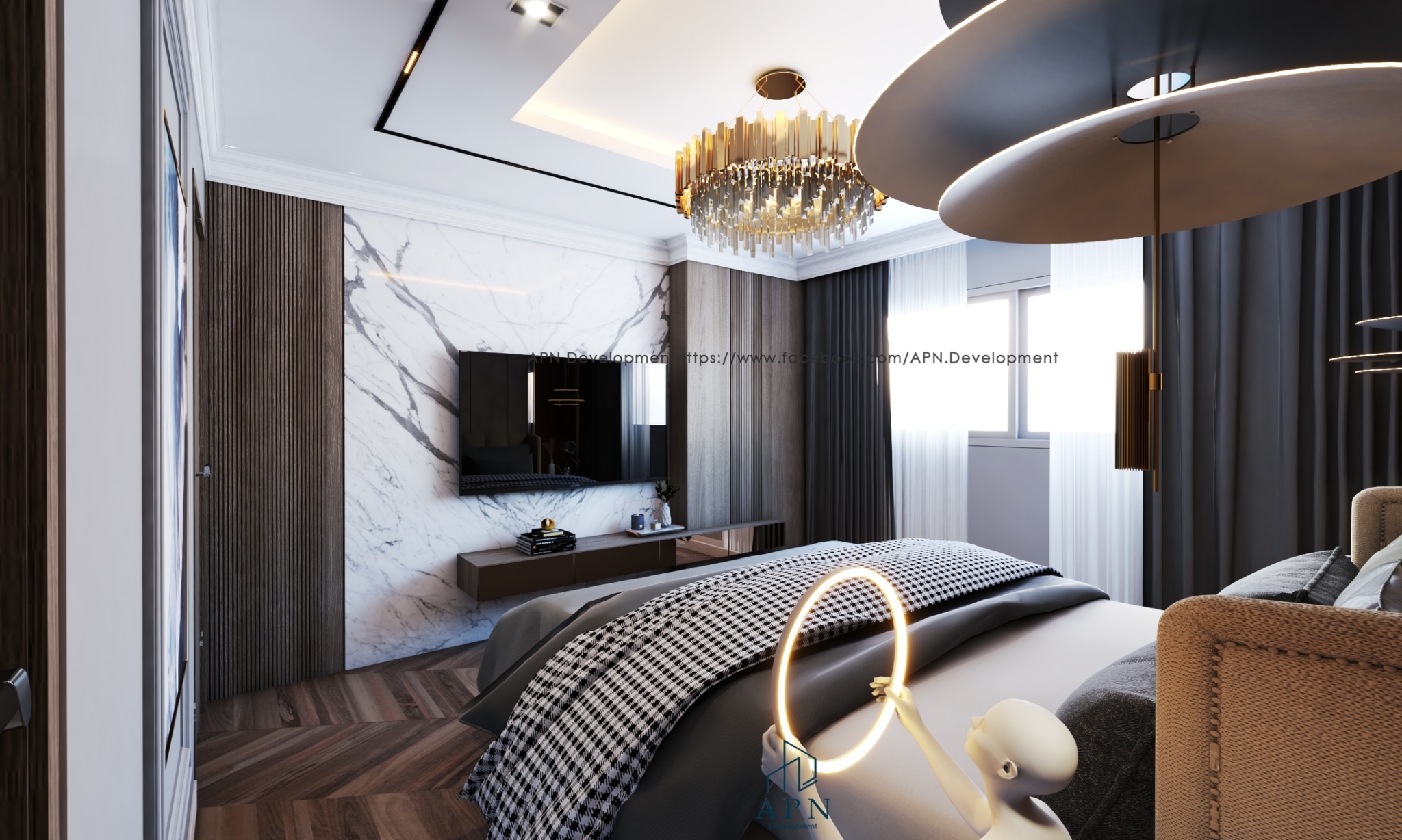 Decorated in Modern luxury style, emphasizing the use of wooden materials, and gold stainless steel,