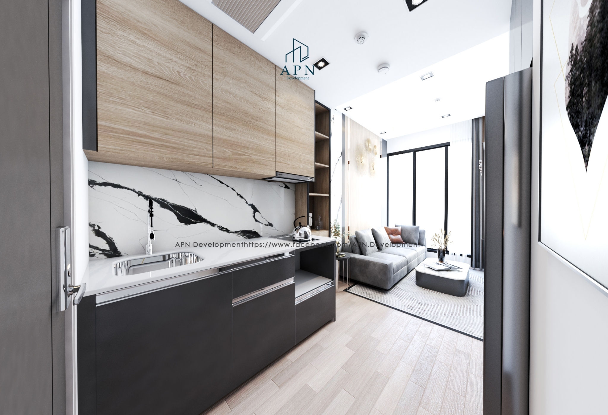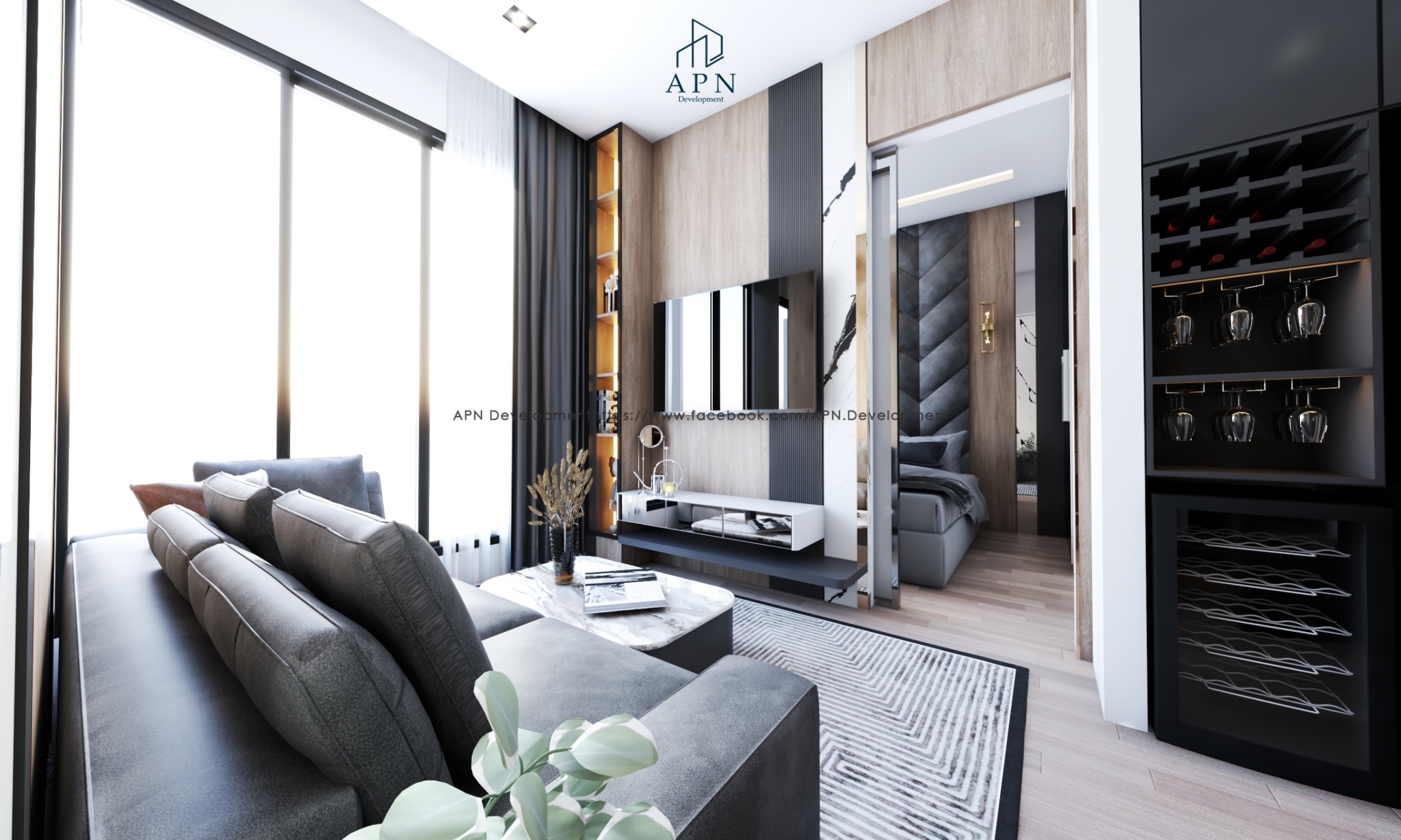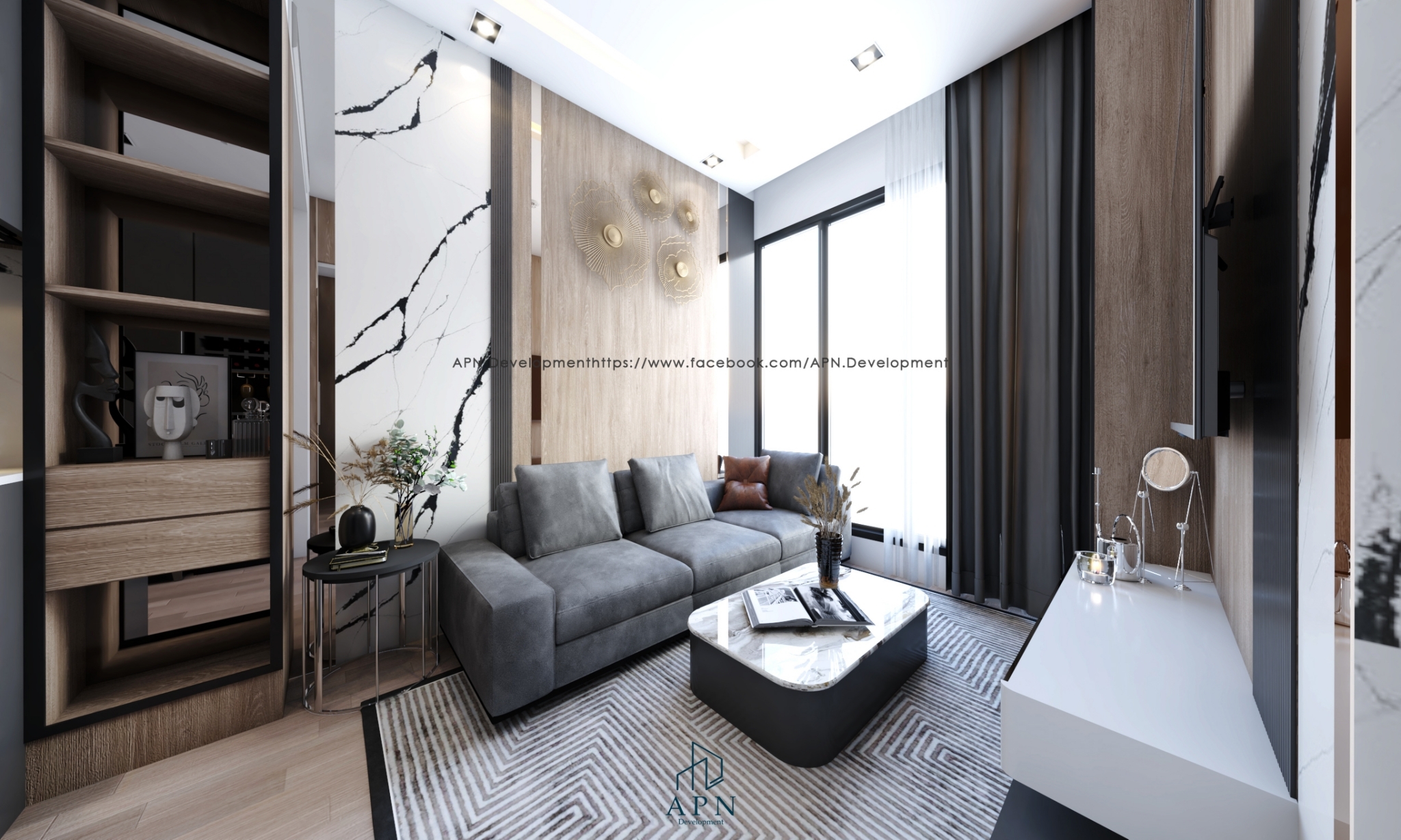 Equinox Phahol-vibha condominium, area 35 sq.m.,decorated in Modern luxury style, black gray tones,