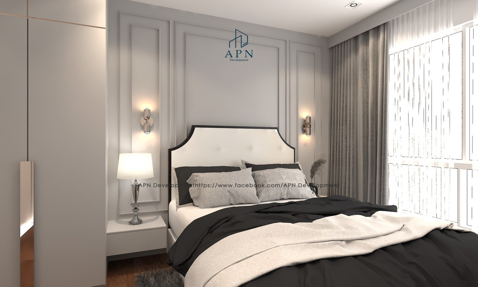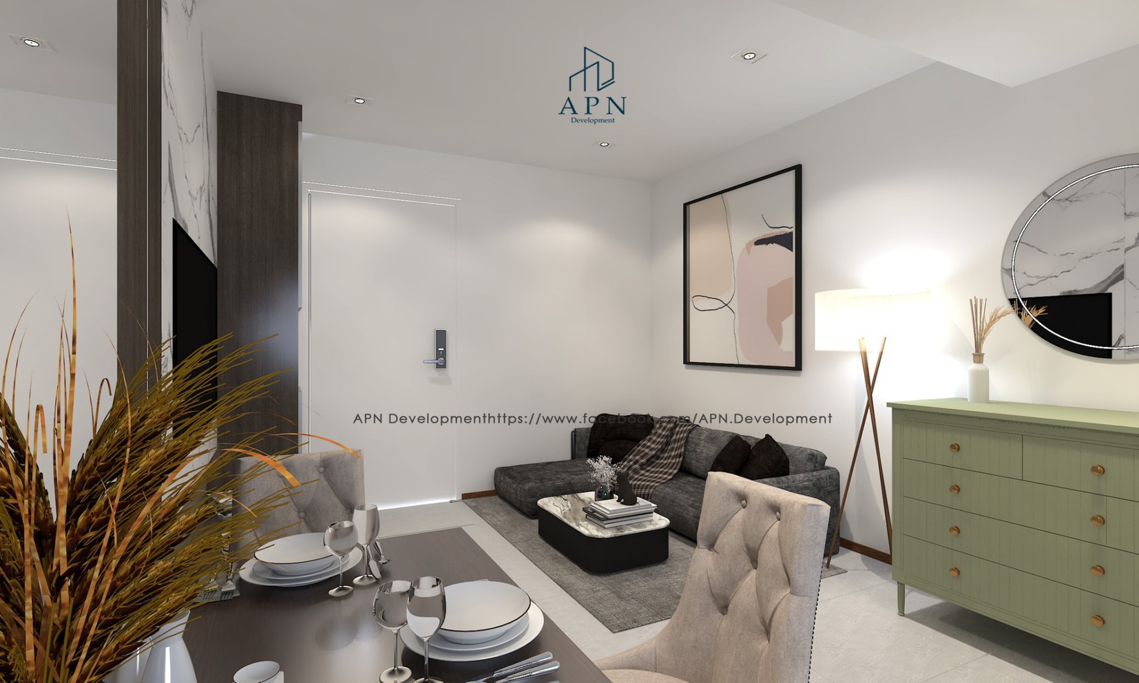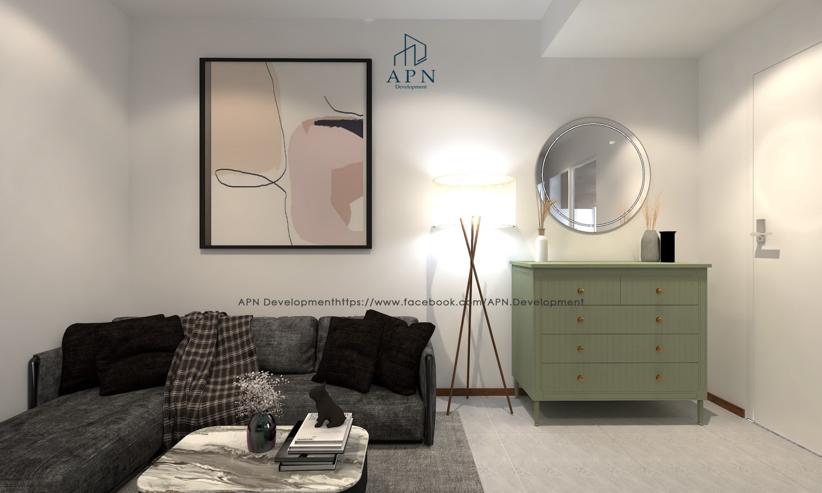 decorated in Modern style, focusing on bright white and gray tones. and has a miasma vintage style according to the preferences of the residents.