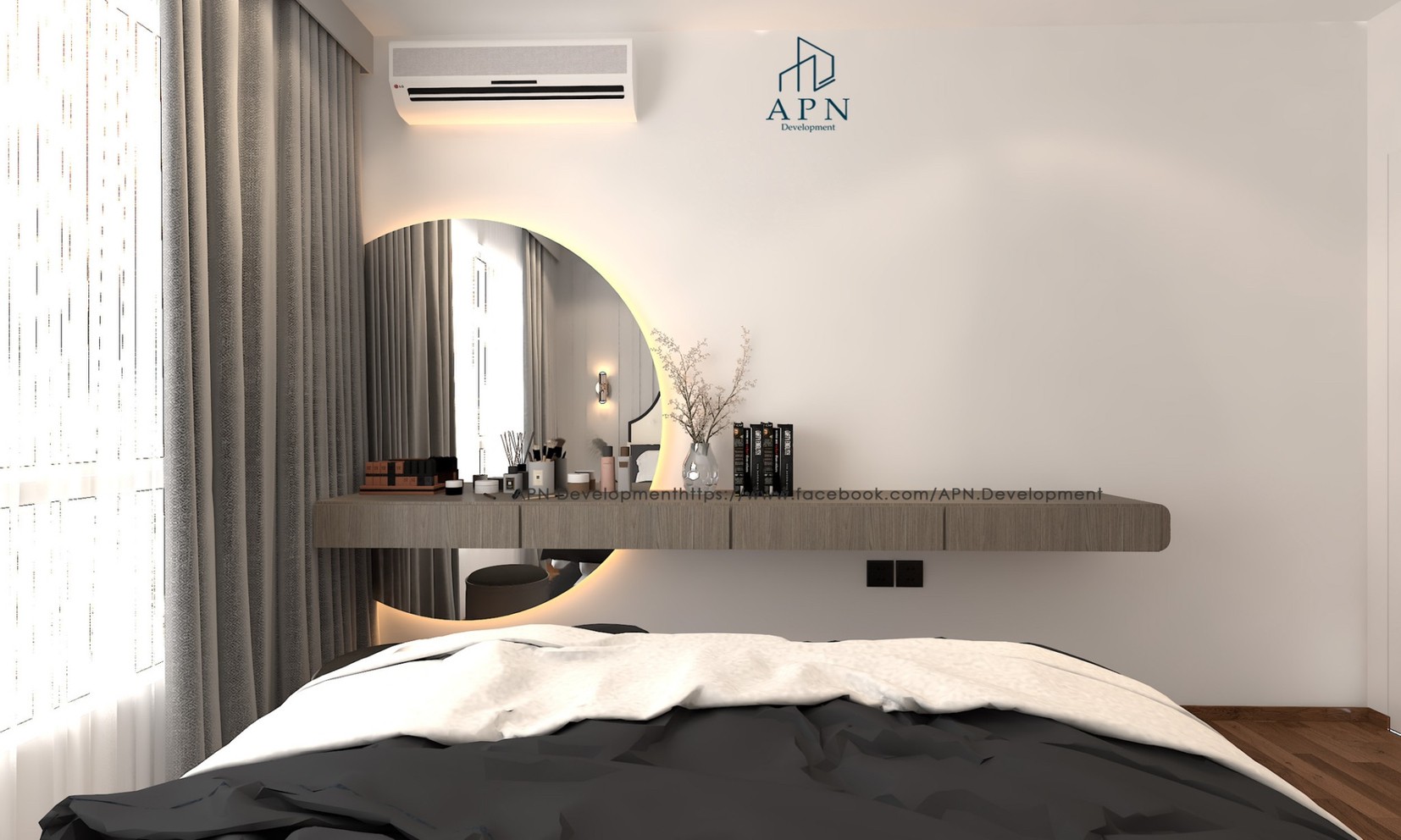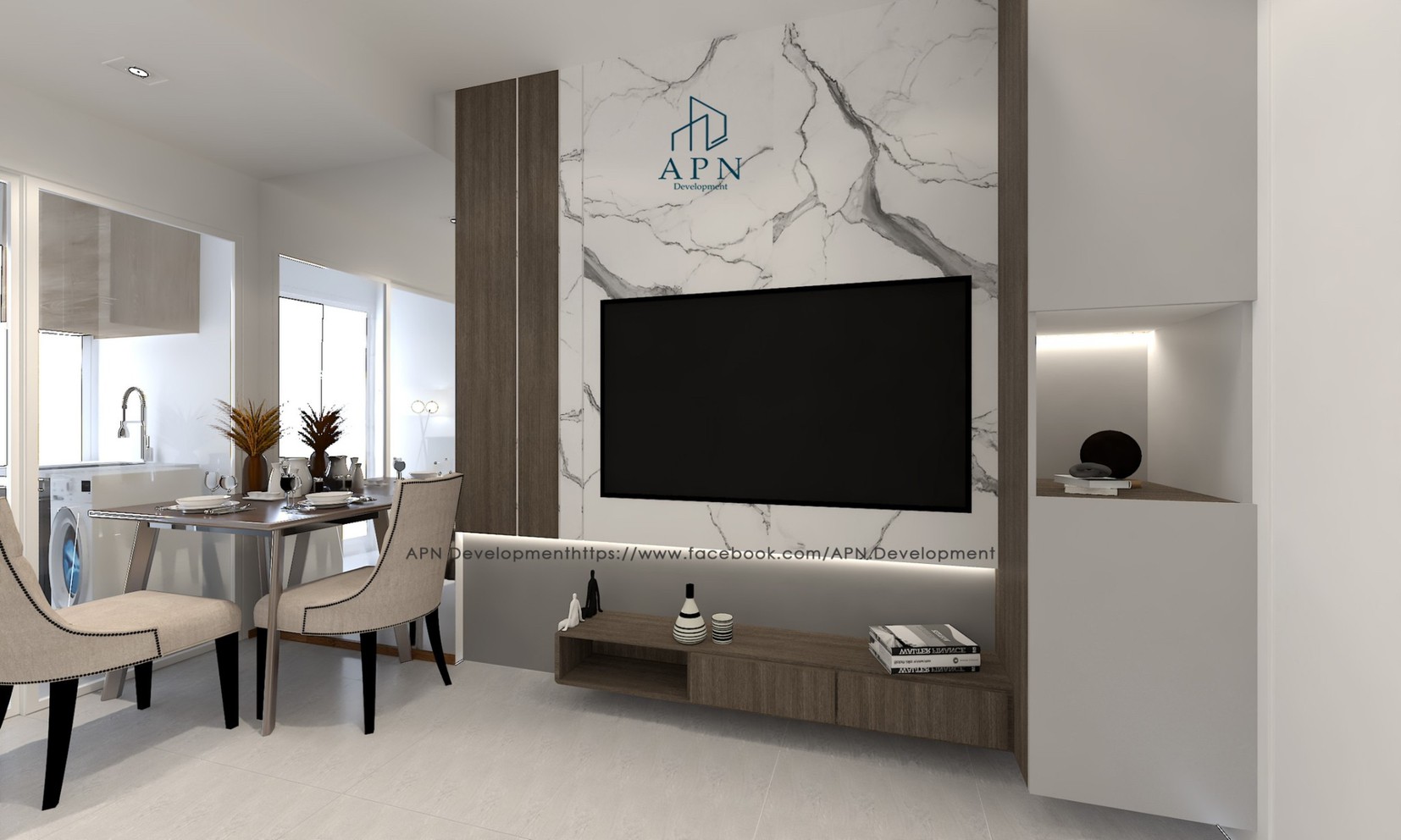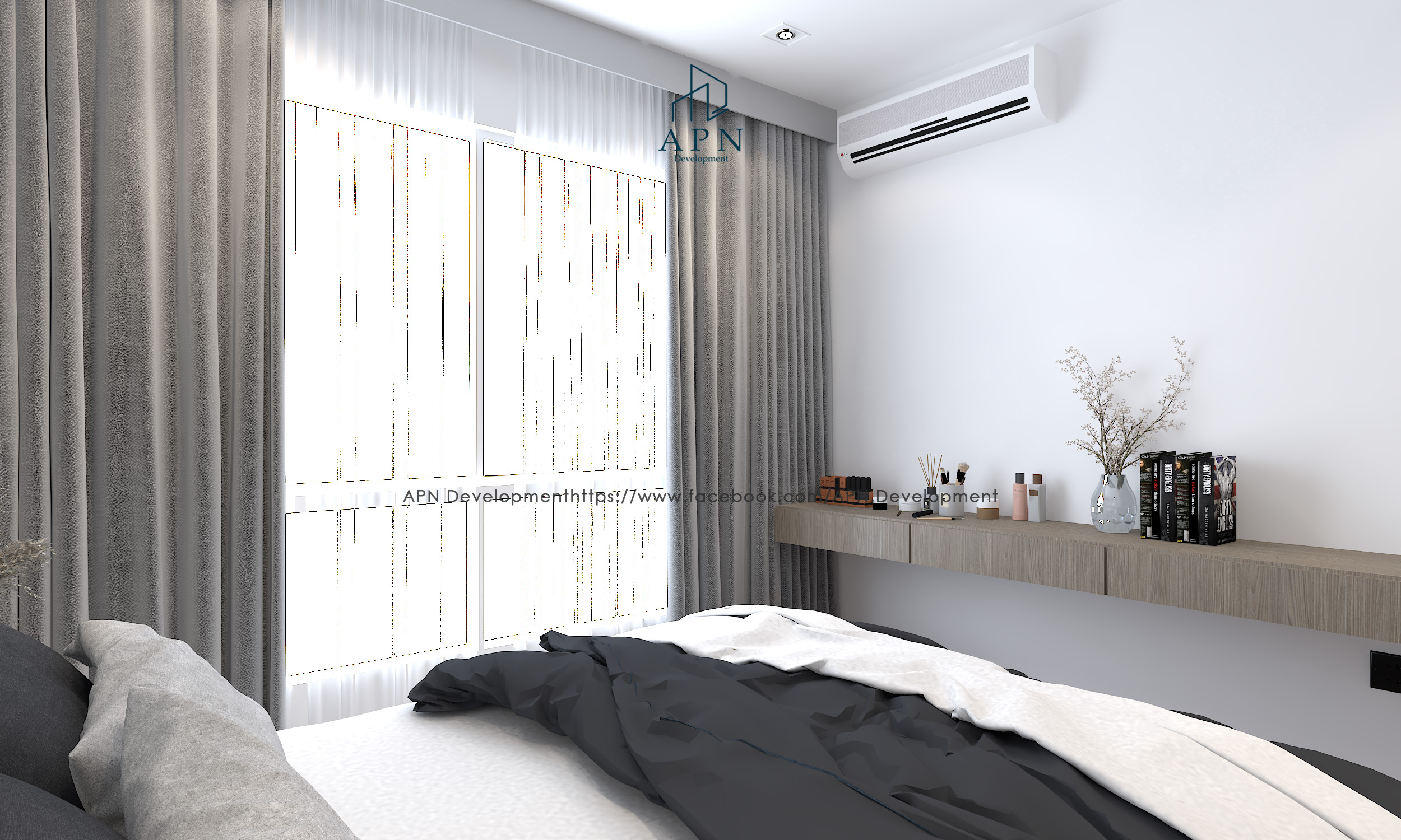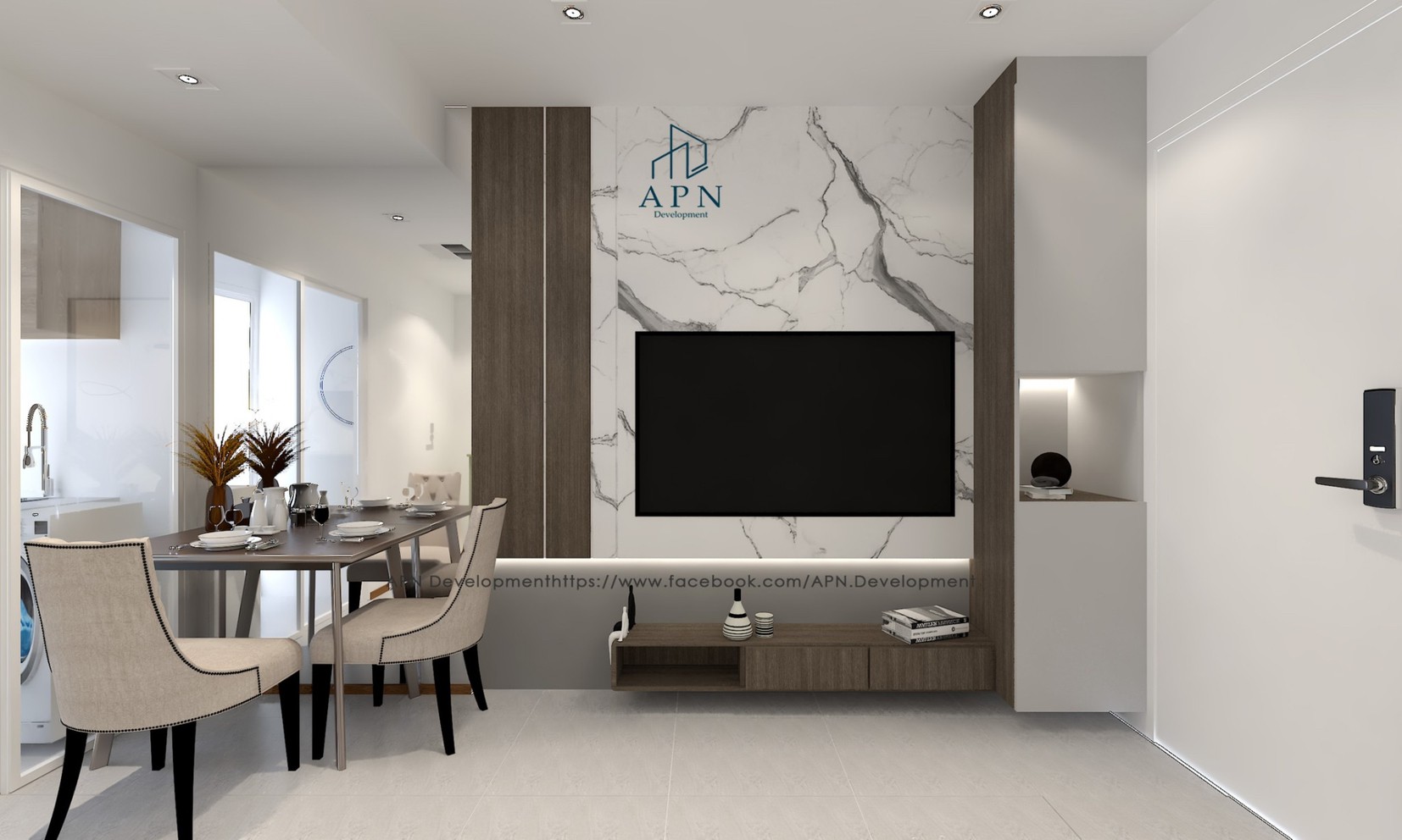 decorated in Modern style, focusing on bright white and gray tones. and has a miasma vintage style according to the preferences of the residents.